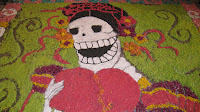 On the road this week. In the central highlands of Mexico. I arrive in Guanojuato on El Dias del Muertos, a very alive beautiful town up in the mountains. Images El Dias Del Muertos pavement art ; chalk, coloured paper,nuts & other found objects. Early morning view from the balcony of my hotel The Truco 7, and a wide shot from El Pipila, and the Jardin de la Union.